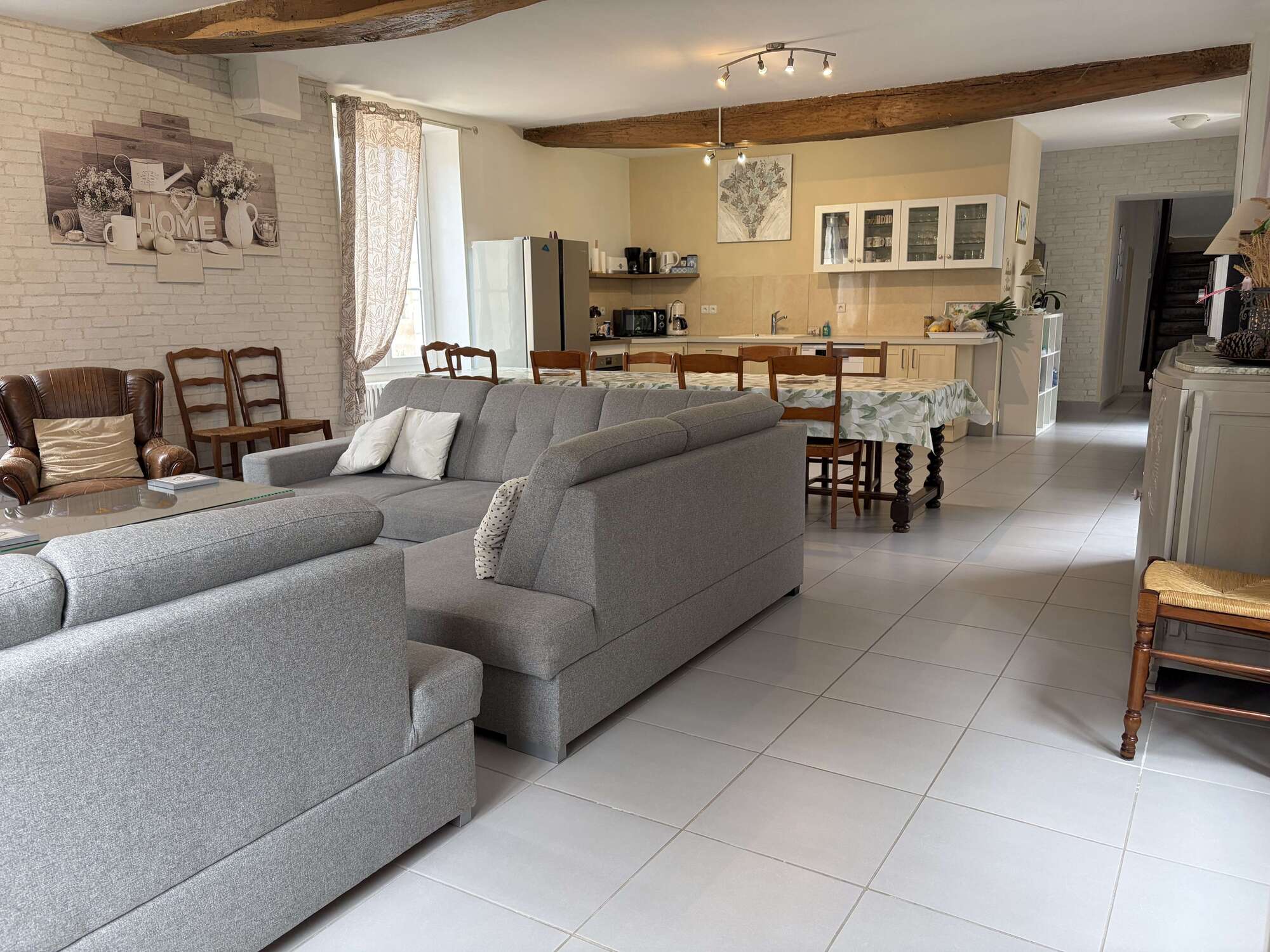 Vue sur jardin et cour intérieure avec nombreuses ouvertures donnant sur l'extérieur où vos enfants pourront jouer en toute sécurité.